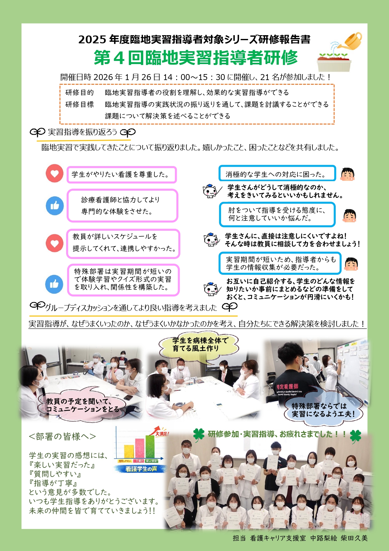 「共に育つ」をテーマに2025年度の実地指導者を対象に全5回のシリーズ研修を開催しました。
