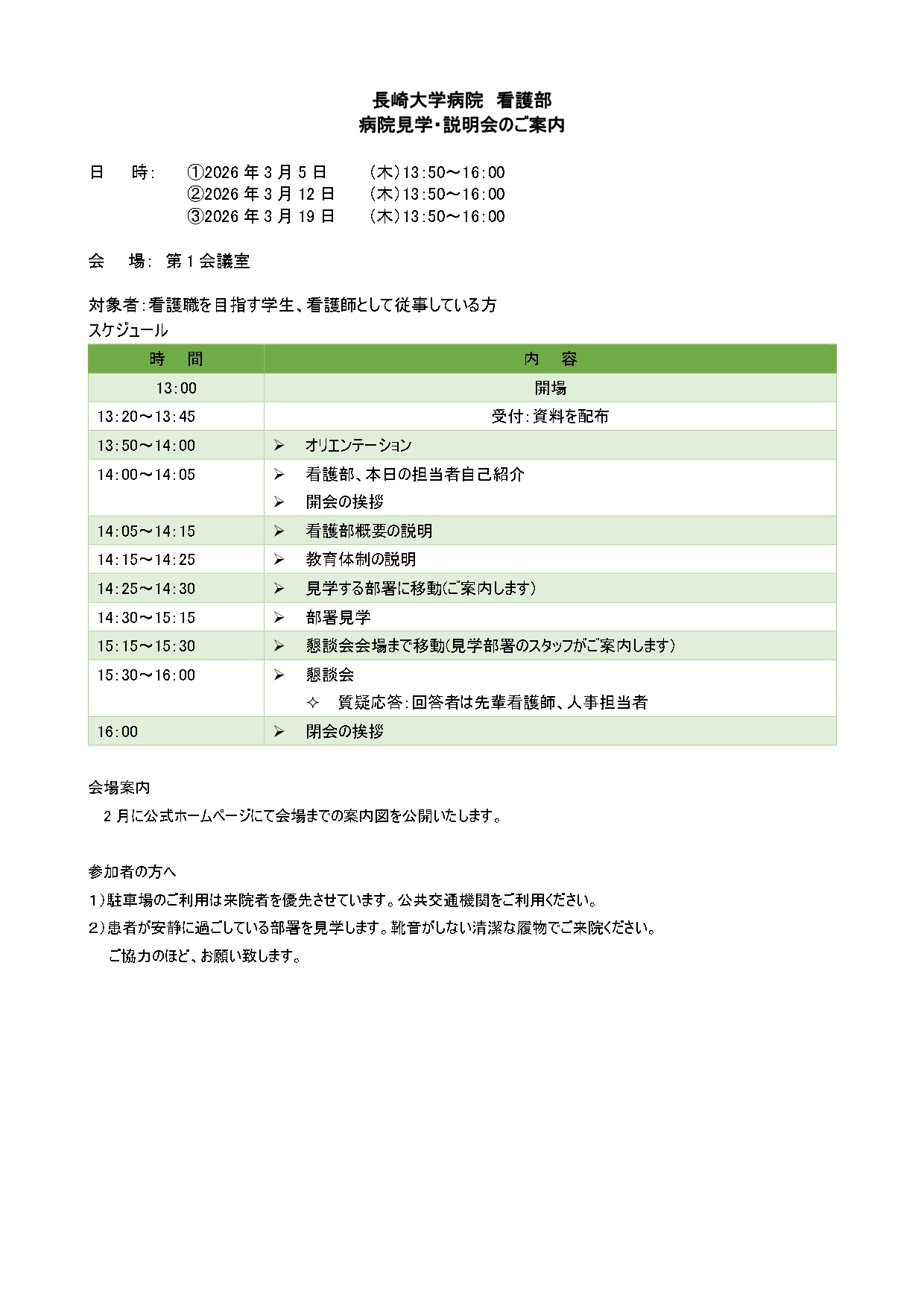 本見学会では、看護師同士のチームワークや、先輩が新人看護師をどうサポートしているかを間近で見ることができます。 現場の温かさを体感しに来てください。
